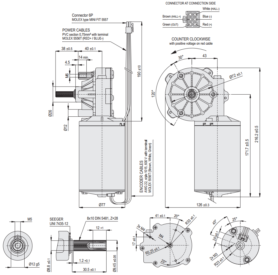 DCGM 77 T72 (Links), DC motor, 77mm, incl. wormwielvertraging, as voorzien van een spline vertanding.