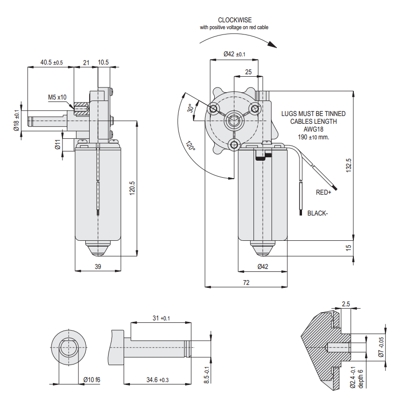 DCGM 43 T42 (Links). compacte wormwiel gelijkstroommotor. as uitvoering: D-Cut. Lang