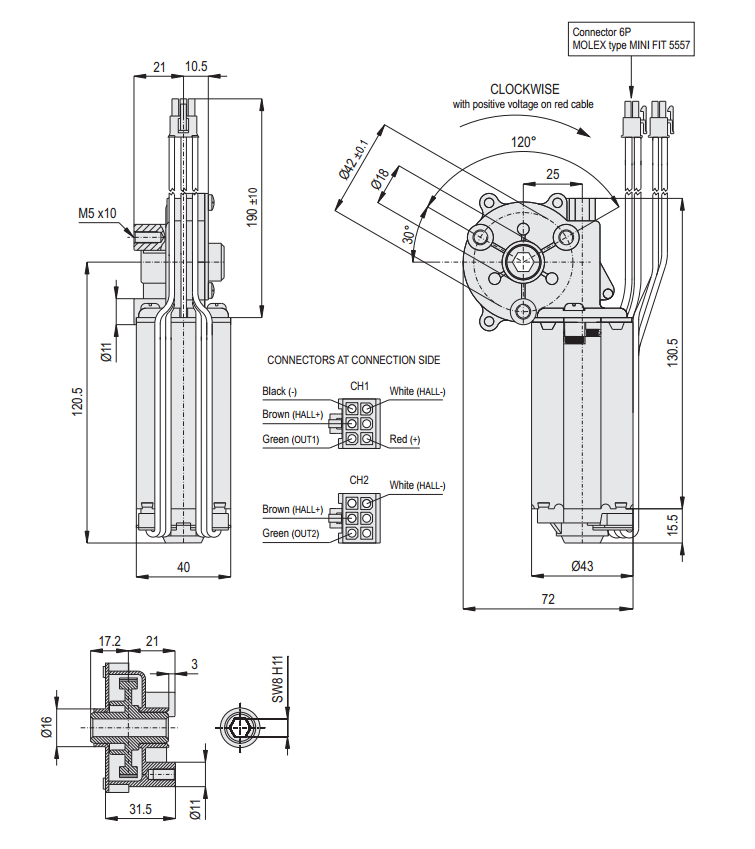 DCGM 43 T42 (Links). compacte wormwiel gelijkstroommotor. as uitvoering: Hol. Spline