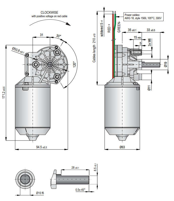 DCGM 63 T50 (Rechts), DC motor, 63mm, incl. wormwielvertraging, uitgaande as voorzien van D-Cut Lang.