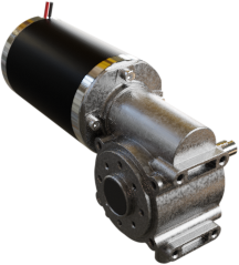 DCmind Borstel DC motor, 63mm- Max.102W. 24VDC + Wormwielvertraging RAD10, i = 5:1, uitgaande as WGR (rechts), 89831
