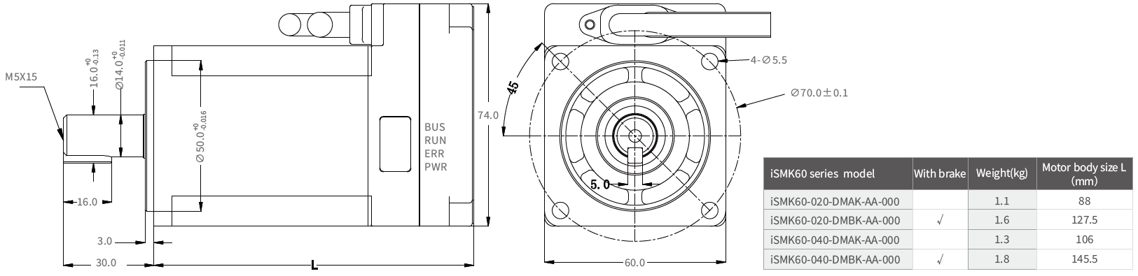 280W DC-servo motor met geïntegreerde versterker incl. houdrem & CAN