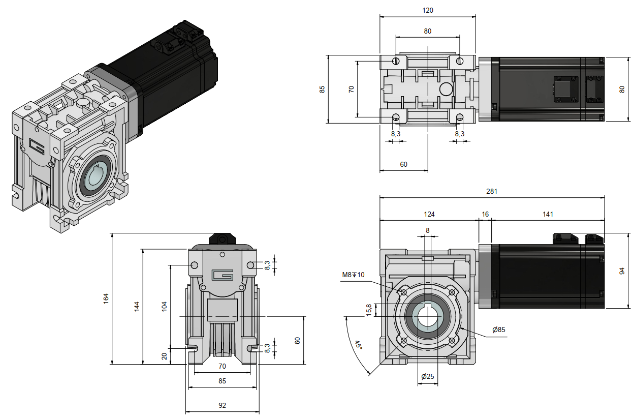 Kinco 750W DC-servo motor met aangebouwde wormwielreductor, incl. houdrem.