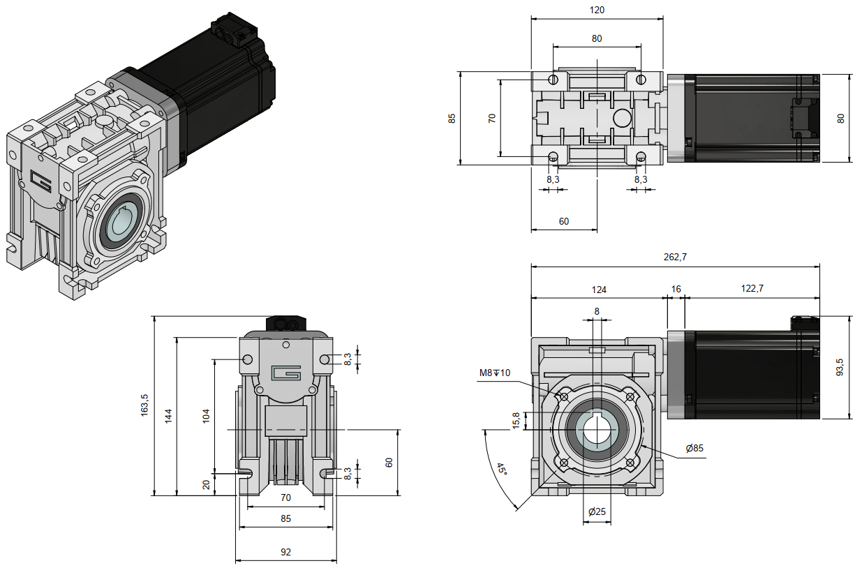 Kinco 1200W DC-servo motor met aangebouwde wormwielreductor, incl. houdrem.