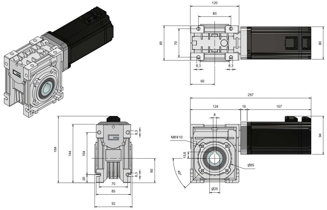 Kinco 1200W DC-servo motor met aangebouwde wormwielreductor.