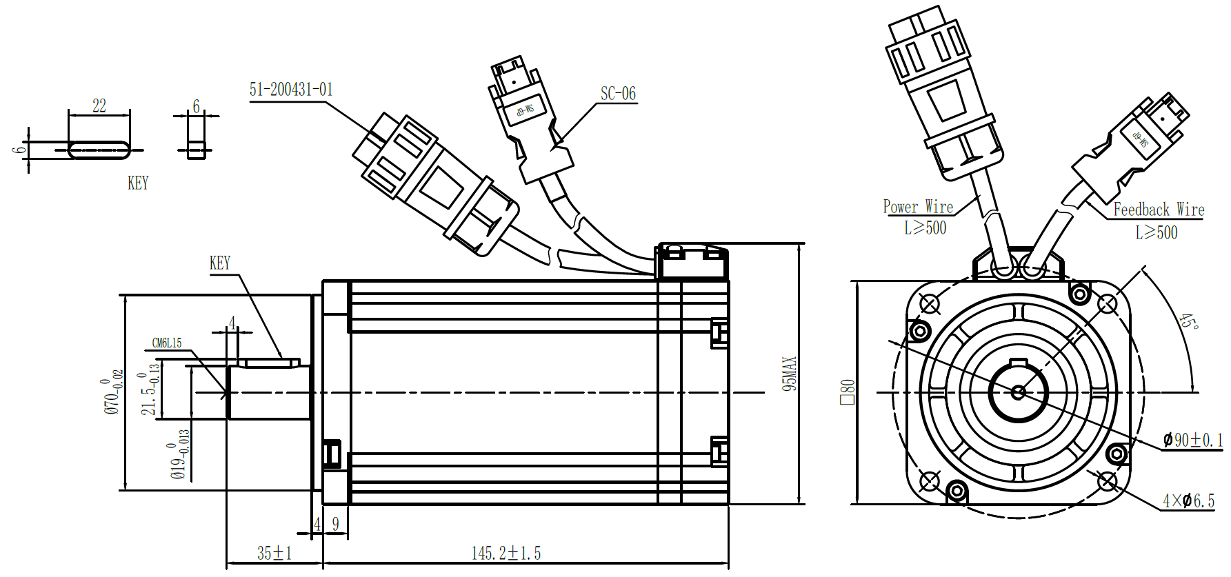 1500W DC-servo motor met absoluut encoder, incl. houdrem