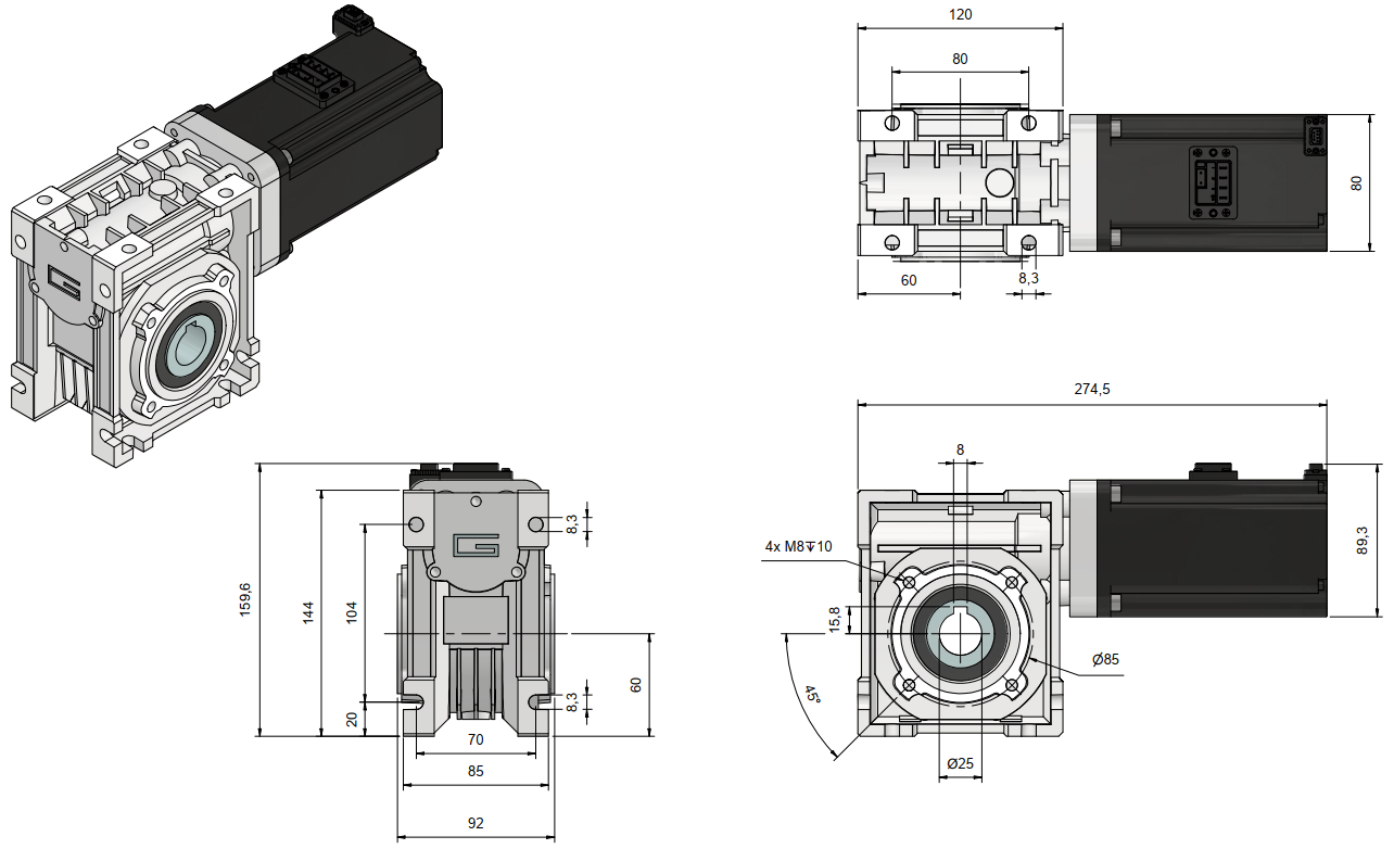 Kinco 750W DC-servo motor met aangebouwde wormwielreductor, incl. houdrem.