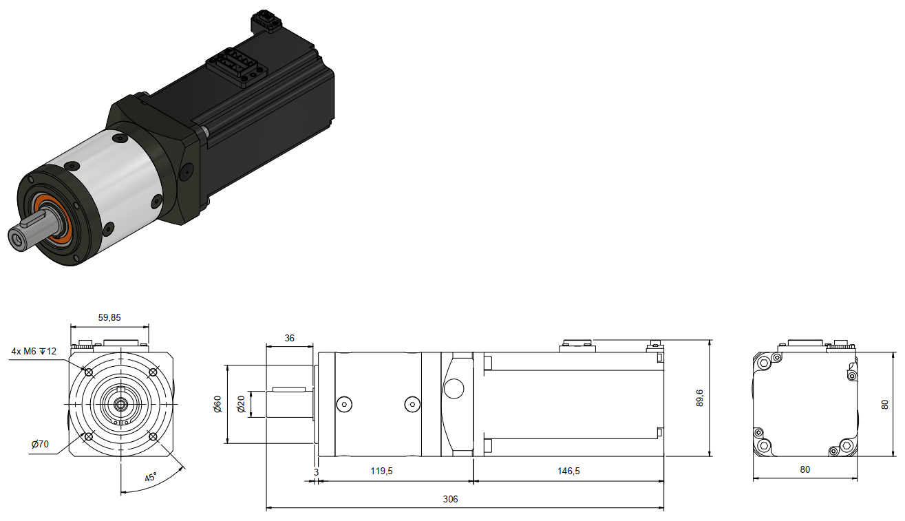 Kinco 1000W DC-servo motor met aangebouwde planetaire reductor, incl. houdrem.