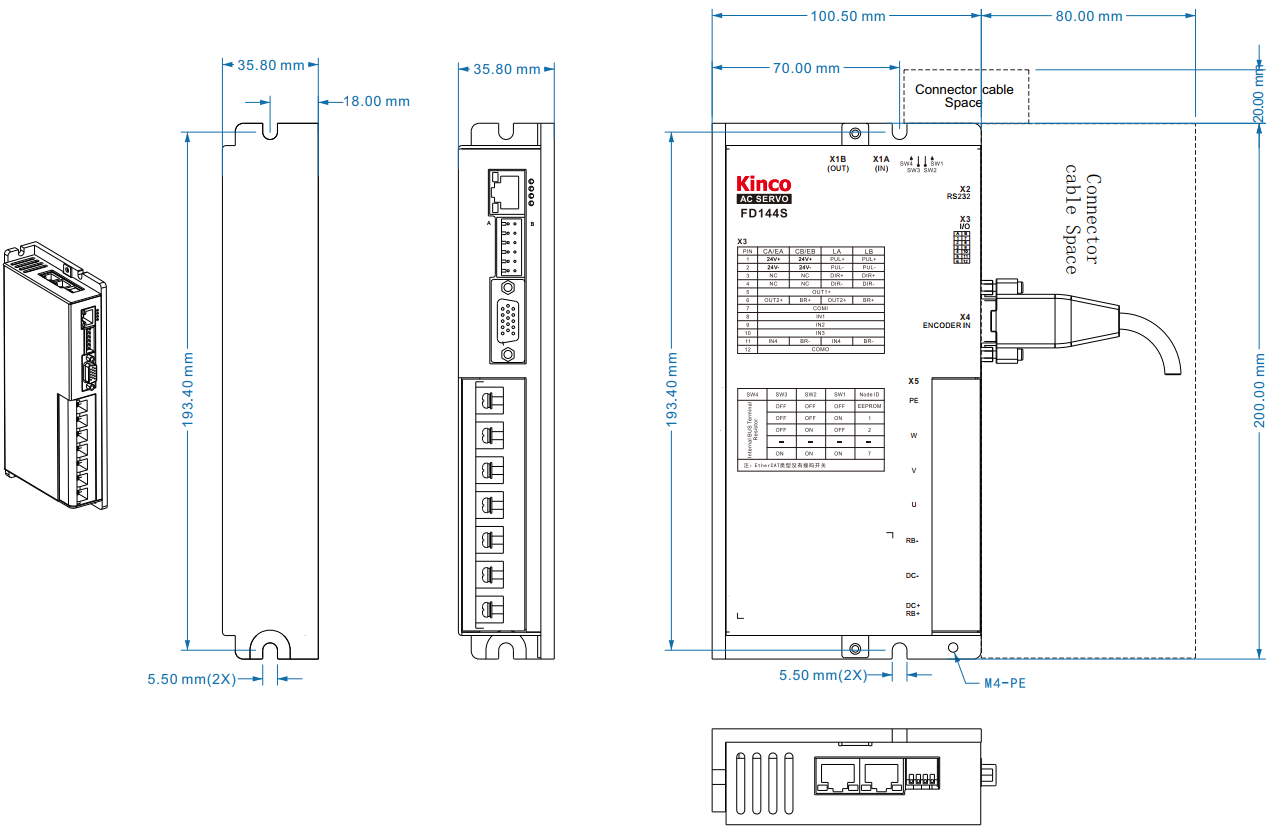 Kinco 1500W DC-servo versterker, incl. RS232 en CAN communicatie.