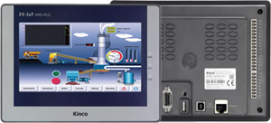 Kinco HMI met geïntegreerde PLC, 7" TFT 800x480, 16 digitale ingangen, 14 digitale uitgangen, 2 analoge ingangen, 1 analoge uitgang. Ethernet, 2xUSB, 2xRS485, CAN, 8xKS-serie I/O uitbreiding mogelijk.